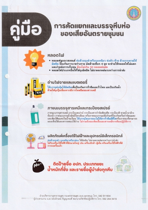 ประชาสัมพันธ์การคัดแยกขยะอันตราย โดยประชาชนสามารถนำขยะอันตรายไปพักไว้ ณ ที่พักขยะอันตรายของแต่ละหมู่บ้านBy admin1 / ตุลาคม 7, 2025